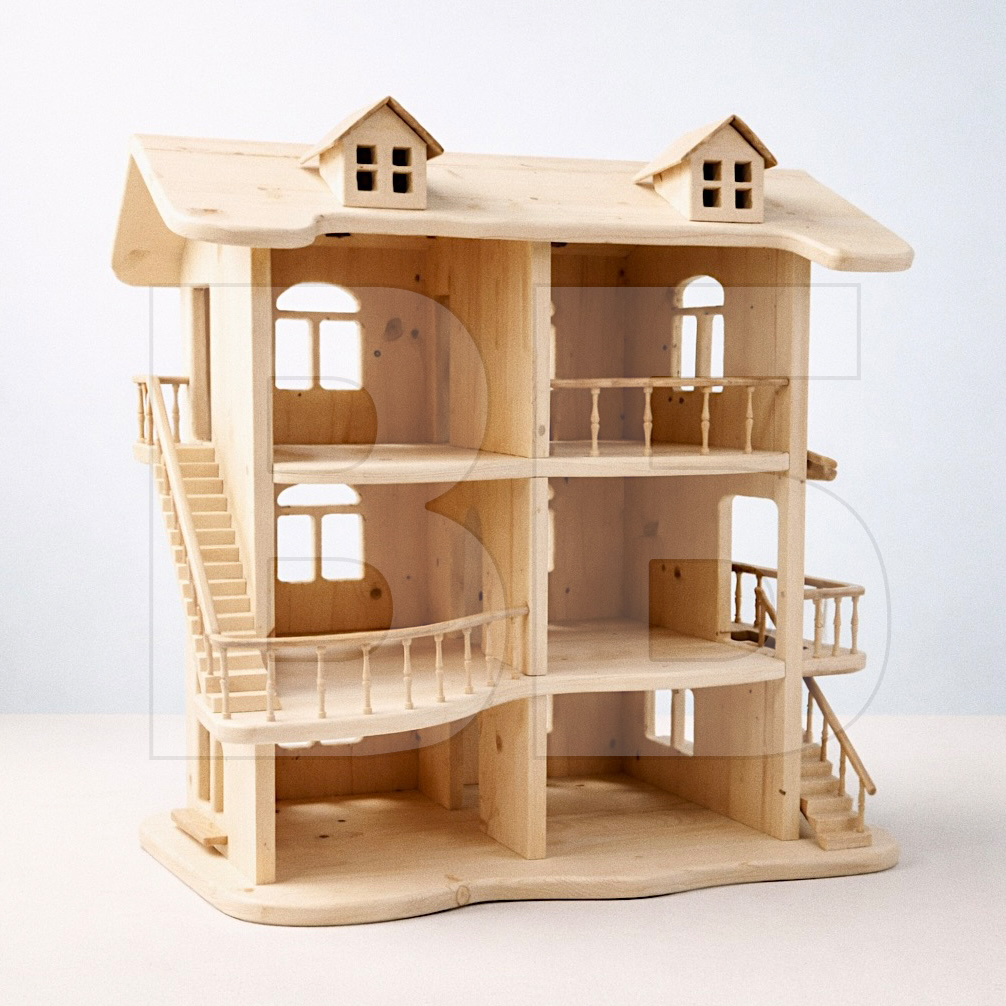 Объемный многоуровневый домик, выполненный из сосны.
