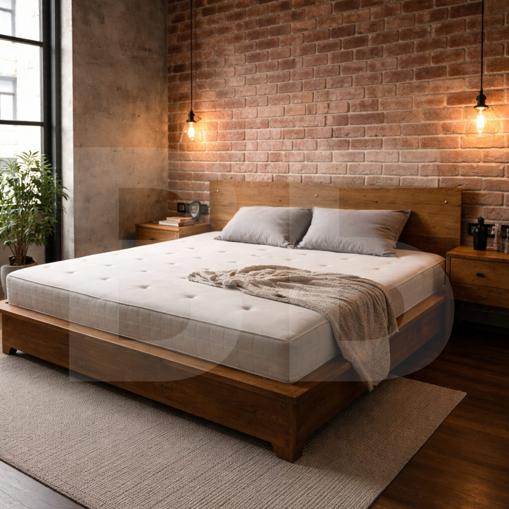 Массивное изголовье, две навесные тумбы. Материал: дуб.