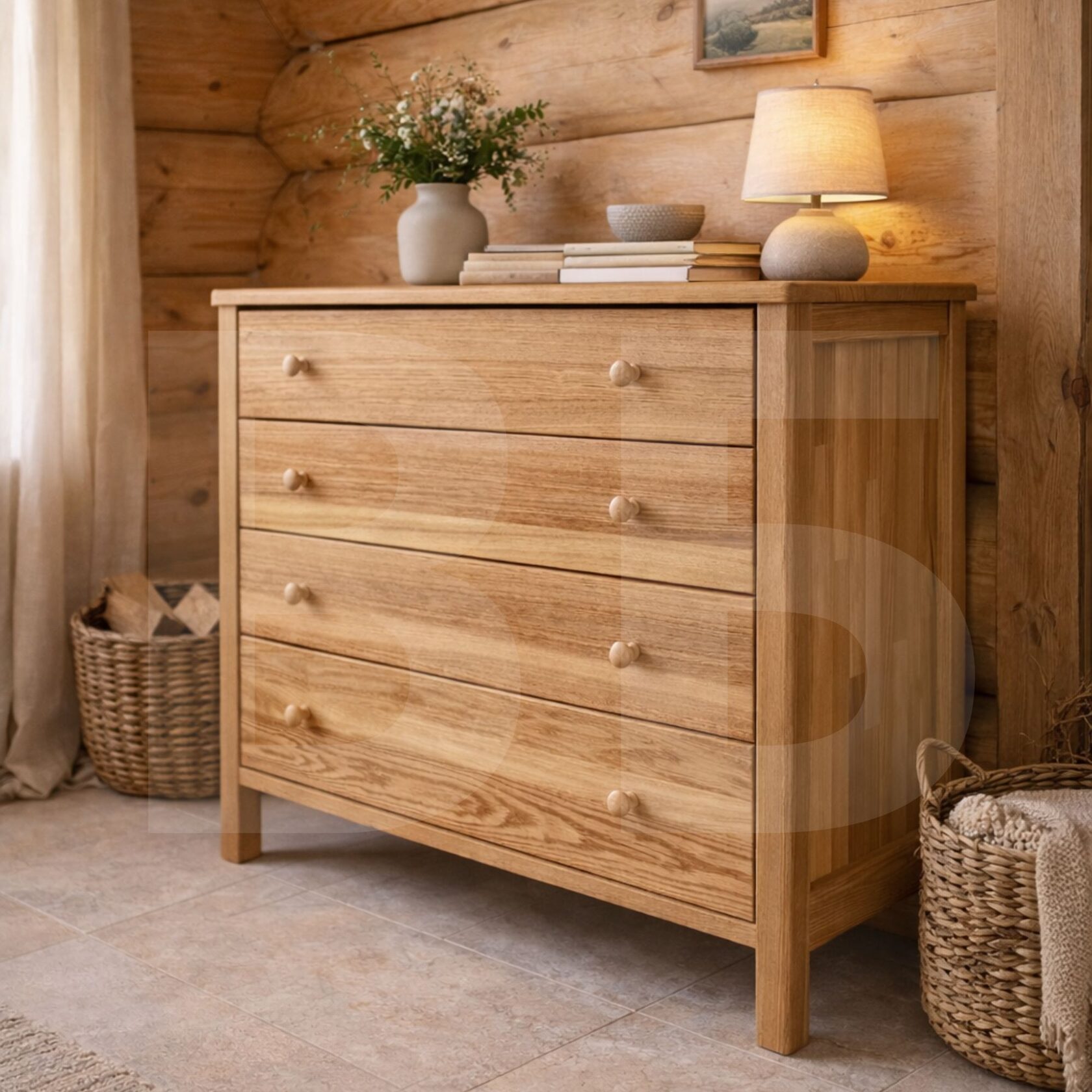 Вместительный комод с выдвижными ящиками. Мягкий ход ящиков, плавное закрывание. Материал: массив ясеня.