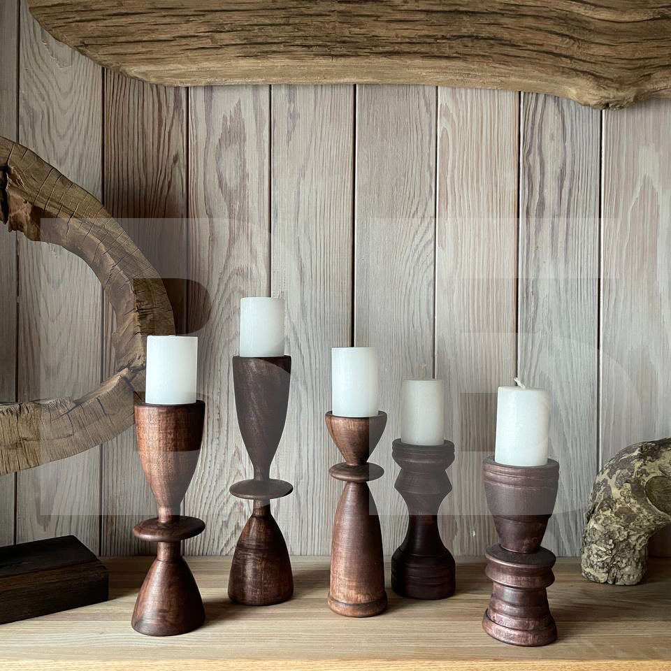 Подсвечники изготовлены вручную из твёрдых пород древесины.